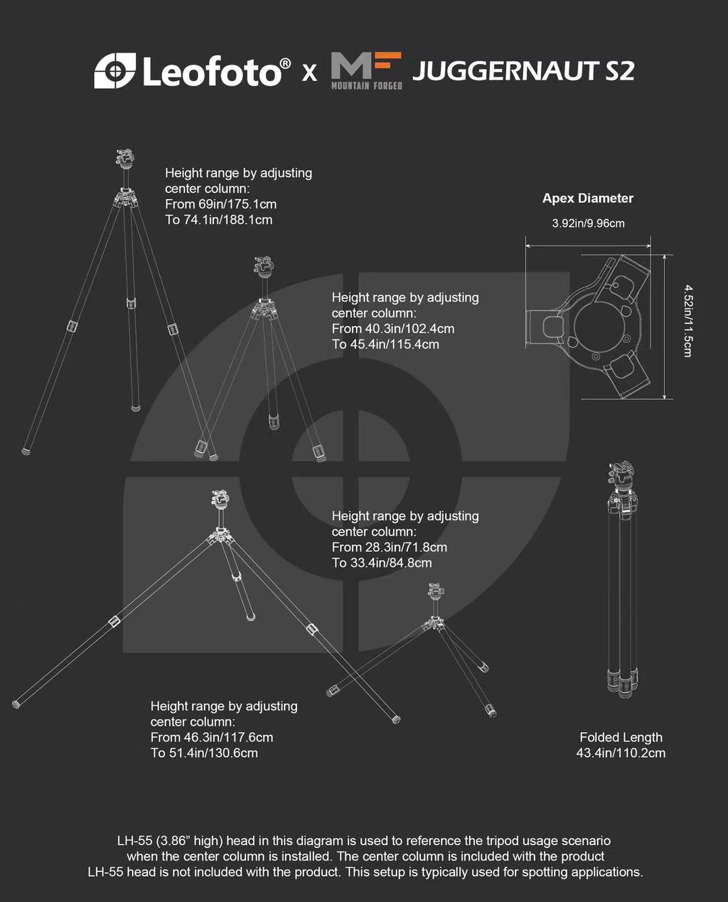 • 44.7 mm / 40 mm Leg Diameters – The thickest carbon fiber tubes on the market, constructed from legendary Toray 10-layer carbon fiber for exceptional rigidity and durability.