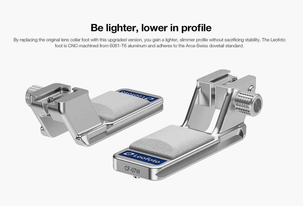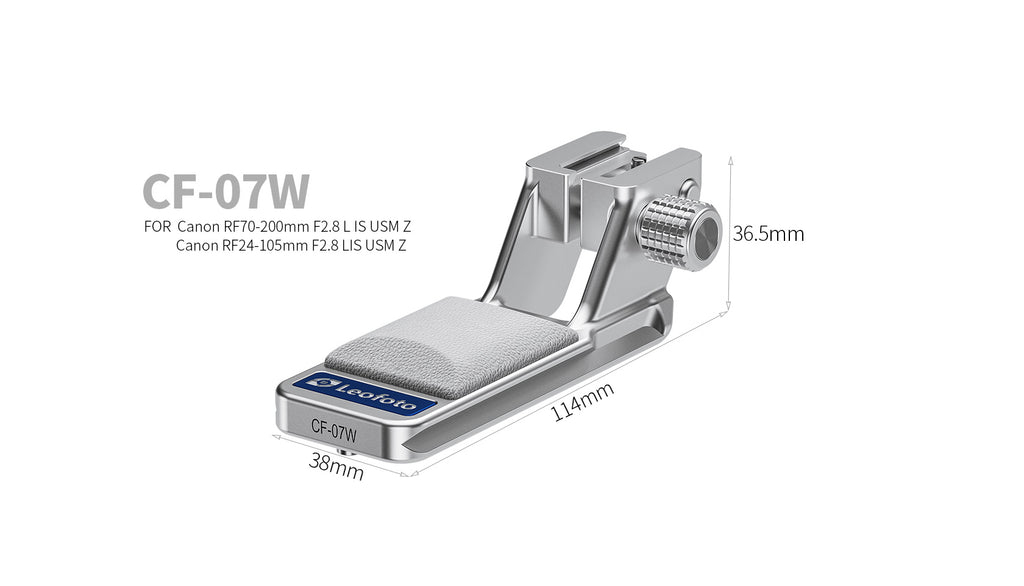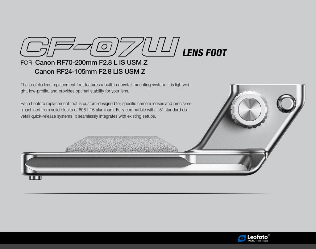 The new Canon lens comes with a detachable tripod foot, but it does not include a built-in Arca-type dovetail. The Leofoto RF-07 foot avoids needing a bolt on Arca type plate which save weight extra height. It also includes a rubber pad that is convenient for holding the camera/lens while shooting. I got a white version of this lens, the RF-07 comes in black only. Oh well, I can live with this. Top class part, I recommend it.
