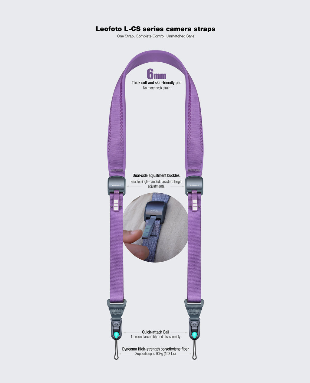 Leofoto L-CS-207/208/209/210 Series Camera Straps are engineered for photographers who need enhanced comfort, precise adjustability, and dependable strength in every shooting environment. Crafted from premium automotive-grade, water-based microfiber and reinforced with high-strength polyester webbing, this series offers exceptional support while remaining lightweight and comfortable for long sessions.