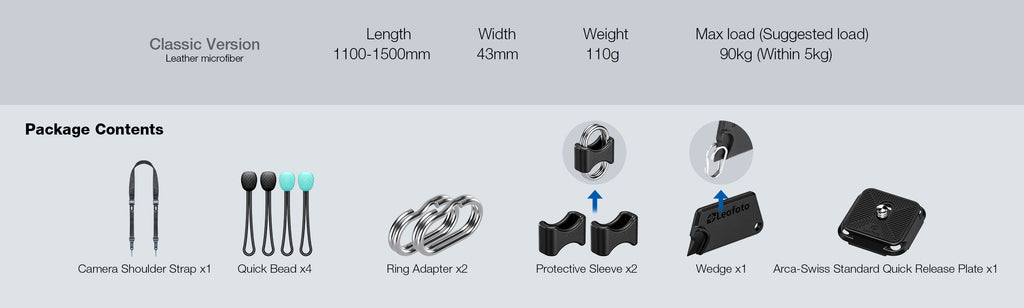 Both series feature Leofoto’s reliable quick-detach system for fast attachment and removal. The metal snap hook and 360° locking mechanism provide stable and secure support for your camera. Unique to the 207–210 series, an Arca-Swiss Standard Quick-Release Plate is included, allowing direct compatibility with Arca-style clamps for smooth and safe mounting.