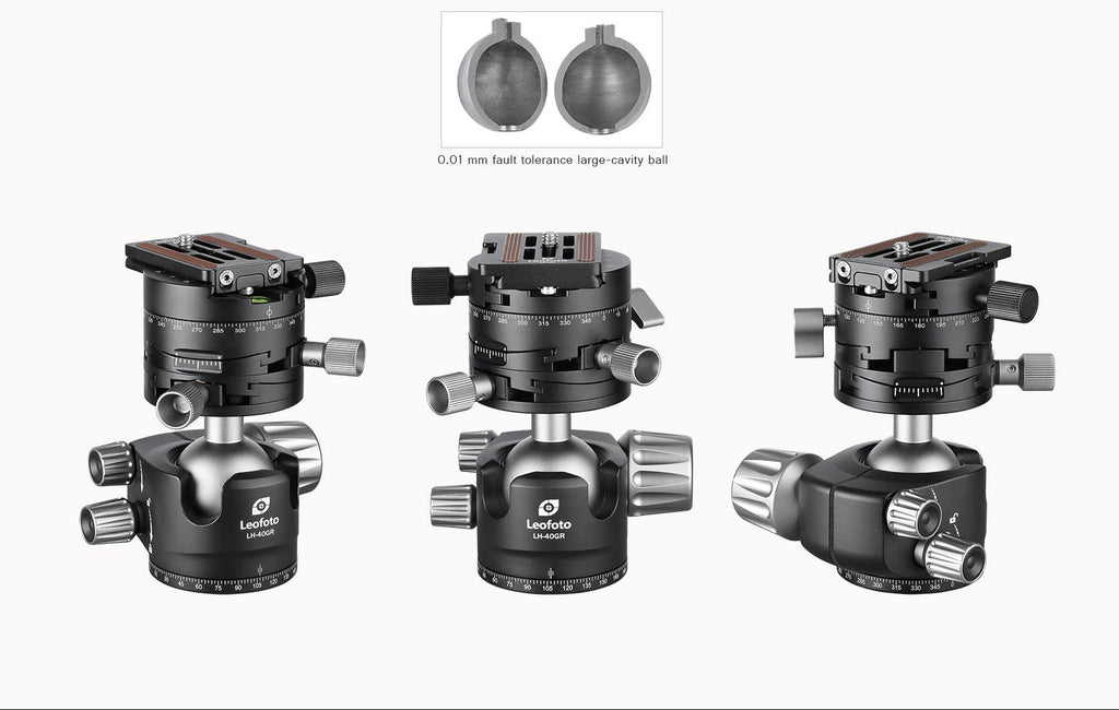 The Leofoto LH-40GR is a precision-engineered tripod head that combines the strength and smoothness of the LH-40 ball head with the accuracy of an integrated G2-style geared panoramic head. Designed for photographers who demand both speed and micrometric control, the LH-40GR is ideal for landscape, architectural, panoramic, and macro photography.