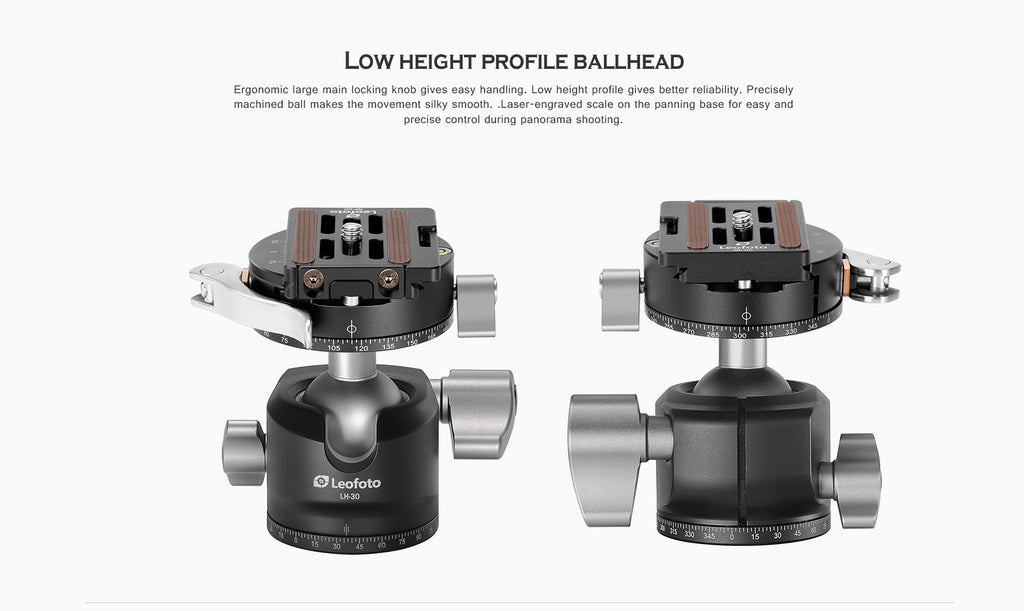Leofoto tripods features 10x carbon fiber tubes that make the tripod lightweight while maintaining a strong load capacity. The 6061 aluminum parts are CNC machined and hard anodized, making the surface tough against scratching and scuffing. The twist leg lock system is quickly deployed with a simple quarter turn. With the tripod's three variable leg angles, it allows you to splay the legs completely out, so the support can drop to a very low minimum height.