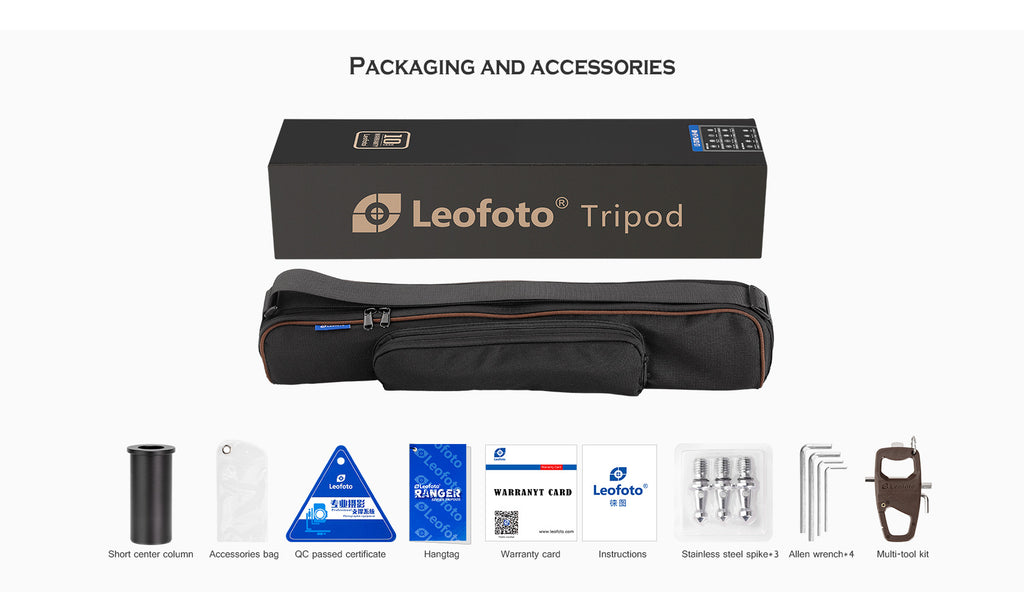 The Leofoto LX Series tripods are built to be lightweight, compact and perfect for travel. The LX tripods feature a reversible center column, perfect for those ground level shots or use the included short center column to set the tripod low to the ground. The rubber leg wrap offers the perfect grip for the traveler that is on the go. The center column mounting stud is reversible and can swap between a 1/4" or 3/8" mounting stud.