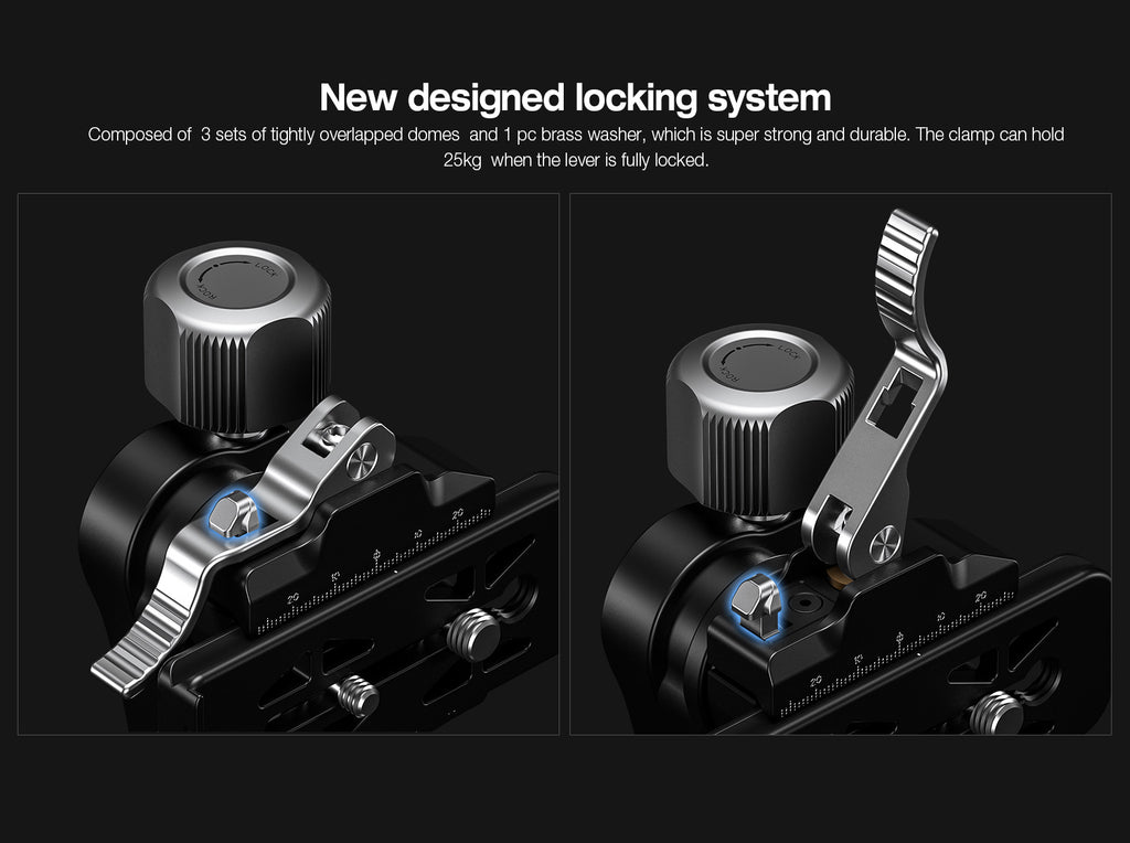 MPG-02L: Newly designed lever-release clamp with a safety latch to prevent accidental unlocking.