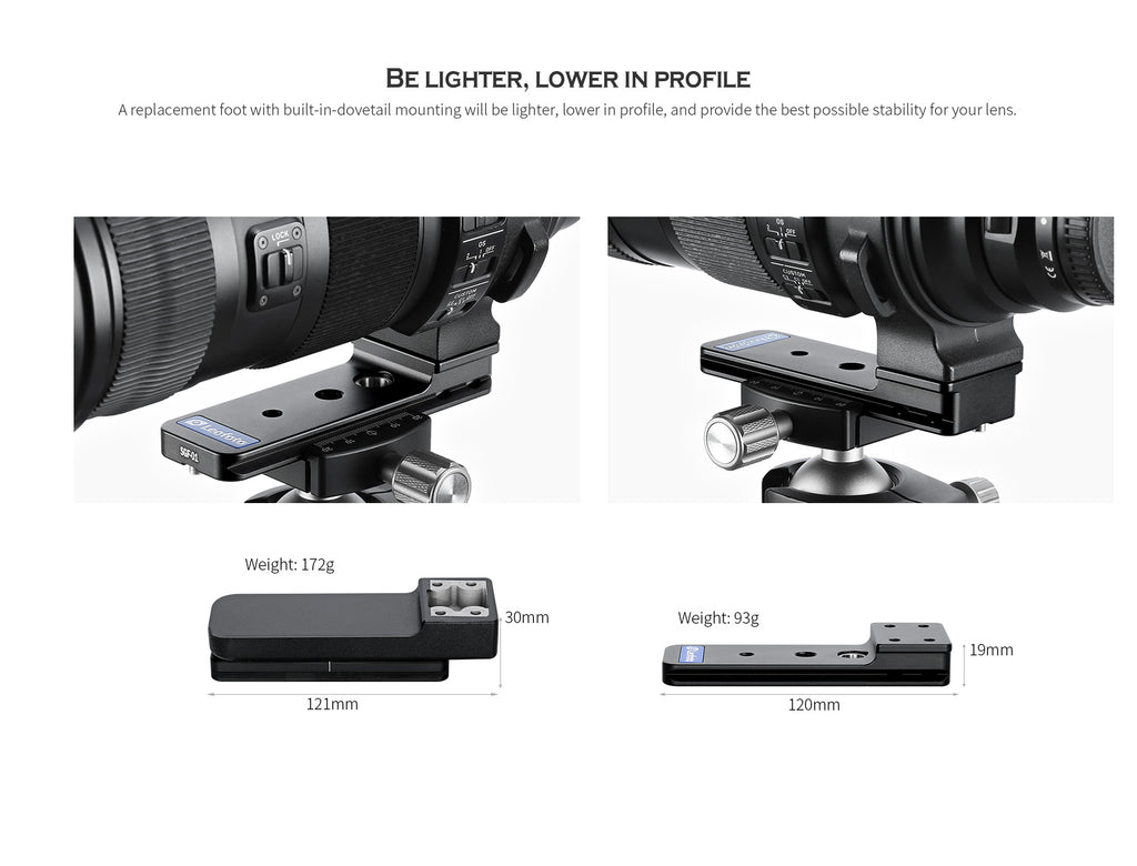Aiming to improve on the original design, the Leofoto SGF-01 replaces SIGMA’s standard lens collar foot and offers a lower profile and center of gravity for enhanced balance and handling.