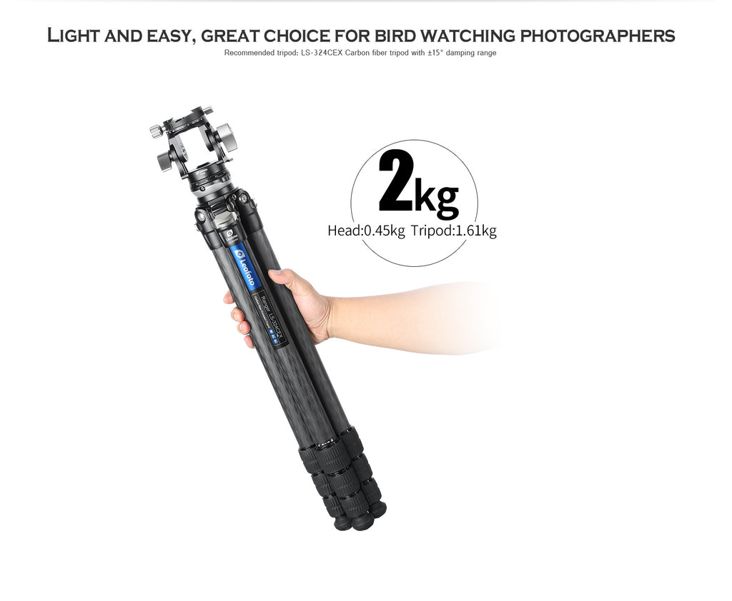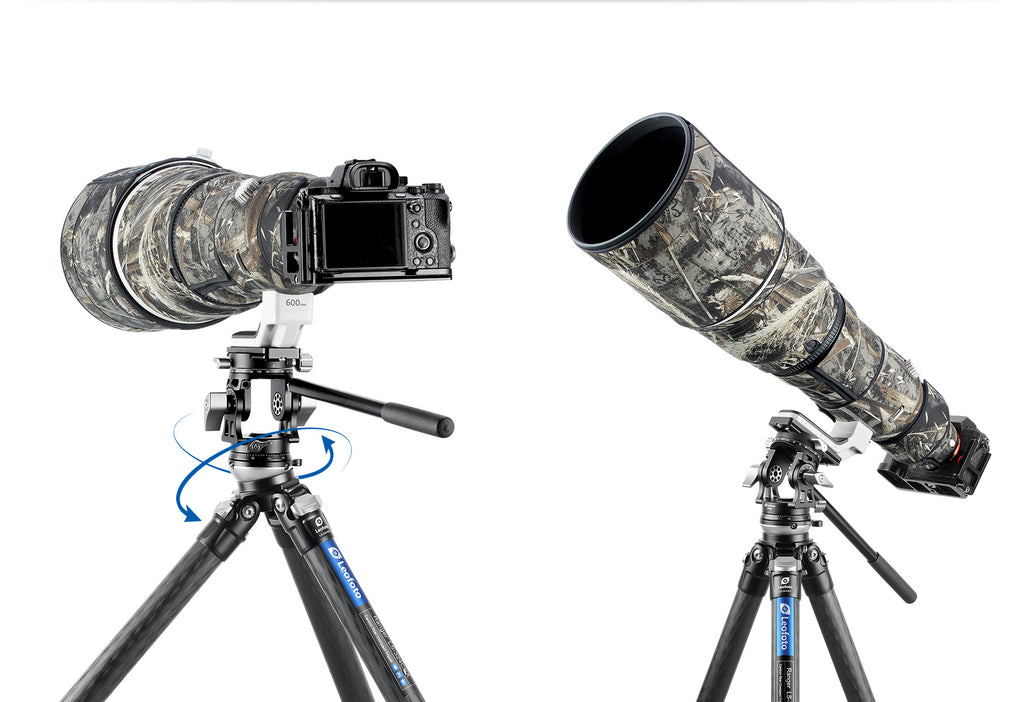 The Leofoto VH Series Two-Way Tele Lens Head is a compact tilting head for monopods that is well suited to birdwatching and other wildlife photography and comes with an extra-long quick release plate. The head can tilt +/- 90°, features adjustable tension for customizing movement resistance, and has a large, ergonomic locking lever. The 360° panning base features an independent locking knob. Leofoto knobs are spring-loaded for easy adjustments.