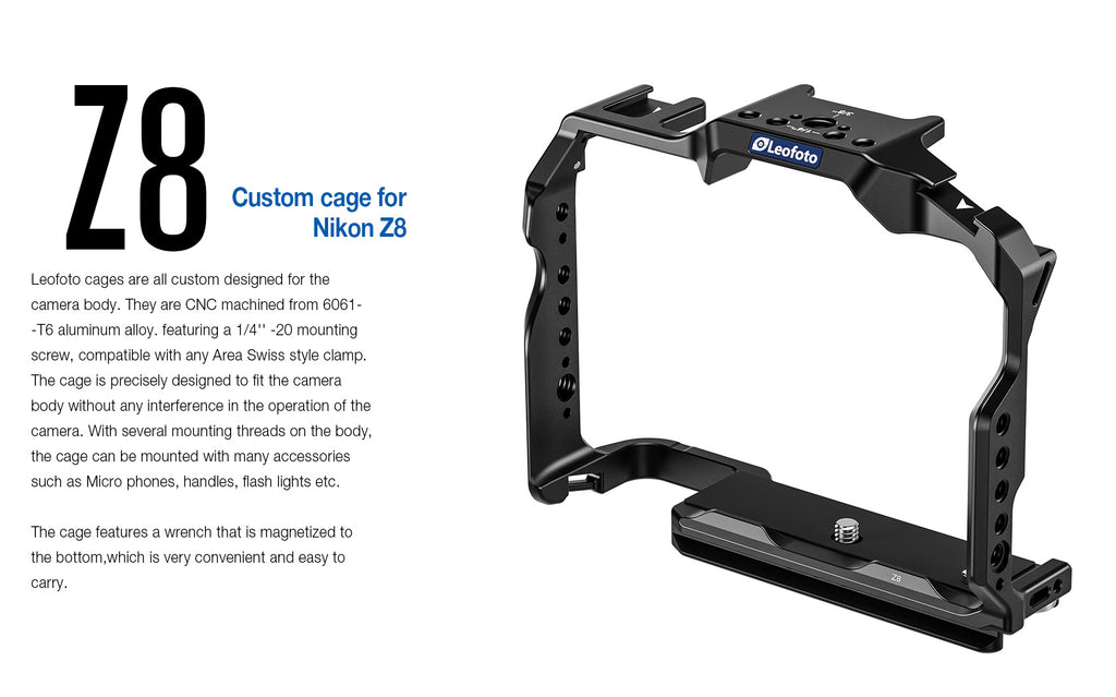 Leofoto Z8 Camera Cage for Nikon Z8 Camera without Battery Grip